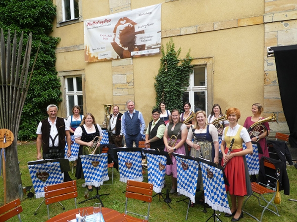 Ergänzt wurde das politische Kabarett von Christian Springer durch einen Frühschoppen, musikalische Umrahmung durch die Blaskapelle „Damisch Böhmisch“ sowie das Spieleangebot des Kreisjugendrings Amberg-Sulzbach mit dem Maxl-Spielebus und einer Ausstellung zu Kinderrechten.