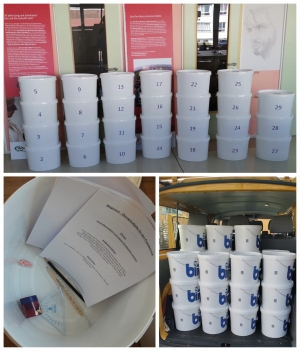 Die Mitarbeiter der Manege gGmbH wurden schnell kreativ: Hausaufgaben und Anleitungen aus den Werkstätten bekommen Jugendliche aus den Hilfsmaßnahmen der Einrichtung aktuell in Eimern vor die Haustür gebracht.